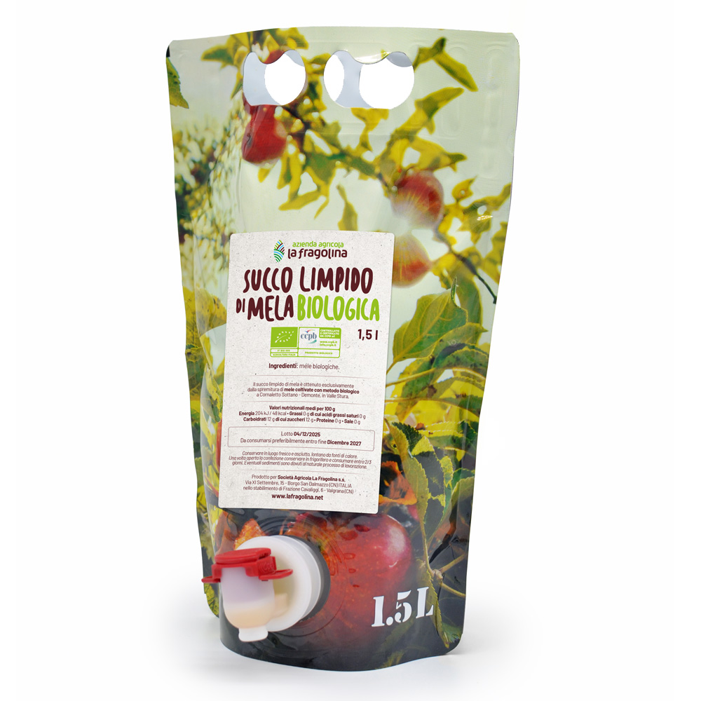 Succo filtrato da mele biologiche di nostra produzione, ottenuto con spremitura a freddo. Confezioni da 1,5 litri.